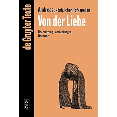 Pressestimmen "Knapp erschließt den Text [...] in mustergültiger einzigartiger Weise und wird durch seine Ausgabe die Forschung wesentlich motivieren." Fritz Wagner in: Editionen in der Kritik, 2/2008 Synopsis Andreas Capellanus wrote "De Amore", his famous Latin treatise on marriage, around 1186. Enhanced by theological, medical and legal wisdom, his book of the art of loving greatly influenced the literature of courtly love during the Middle Ages. This monolingual textbook edition provides a modern German translation in addition to explanatory notes on the sources and a language commentary to aid comprehension of particular passages and the difficulties of translation. A bibliography and a postscript that sets the work in its literary context round off this new translation. In terms of the history of human thought and literature, this famous text is of great relevance to students, literary scholars and medievalists alike, and serves as the basis for an understanding of courtly love poetry during the Middle Ages. Alle ProduktbeschreibungenGebundene Ausgabe=374 Seiten. Verlag=De Gruyter; Auflage: Reprint 2013 (18. Juli 2006). Sprache=Deutsch. ISBN-10=311017927X. ISBN-13=978-3110179279. Größe und/oder Gewicht=15,6 x 2,2 x 23,4 cm. Durchschnittliche Kundenbewertung=Schreiben Sie die erste Bewertung. Amazon Bestseller-RangMittelalterAntikeLiteraturgeschichte & -kritik=Nr. 505.069 in Bücher (Siehe Top 100 in Bücher) .zg_hrsr { margin: 0; padding: 0; list-style-type: none; } .zg_hrsr_item { margin: 0 0 0 10px; } .zg_hrsr_rank { display: inline-block; width: 80px; text-align: right; } Nr. 18 in Bücher > Literatur & Fiktion > Literaturgeschichte & -kritik > Bewegungen & Epochen > Nr. 26 in Bücher > Literatur & Fiktion > Antike & Mittelalter > Nr. 247 in Bücher > Literatur & Fiktion > Deutsche Literatur & Belletristik >.