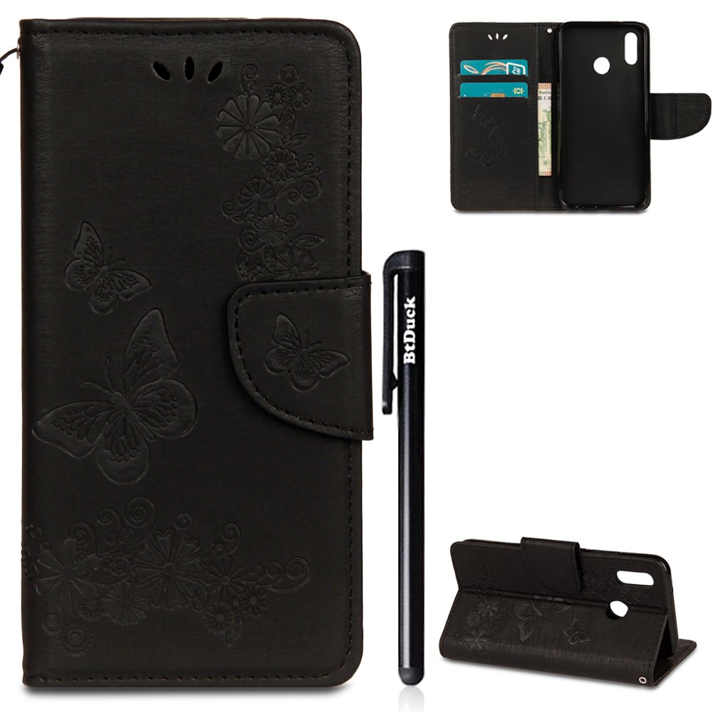 [P20 Lite] Handyhülle Huawei P20 Lite,Hülle Huawei P20 Lite Schwarz,BtDuck Ultra Slim Lanyard/Strap Elegant Schmetterling Muster Lederhülle Huawei P20 Lite Tasche Dünn PU Leder Flip Wallet Case Cover mit Silikonhülle Schutzhülle für Huawei P20 Lite Hüllen Mädchen Smart Cover Magnetverschluss Hülle Brieftasche mit Standfunktion Kartenfächer Bookstyle Schutztasche Brieftasche + 1x Schwarz Stift Stylus Pen EPub